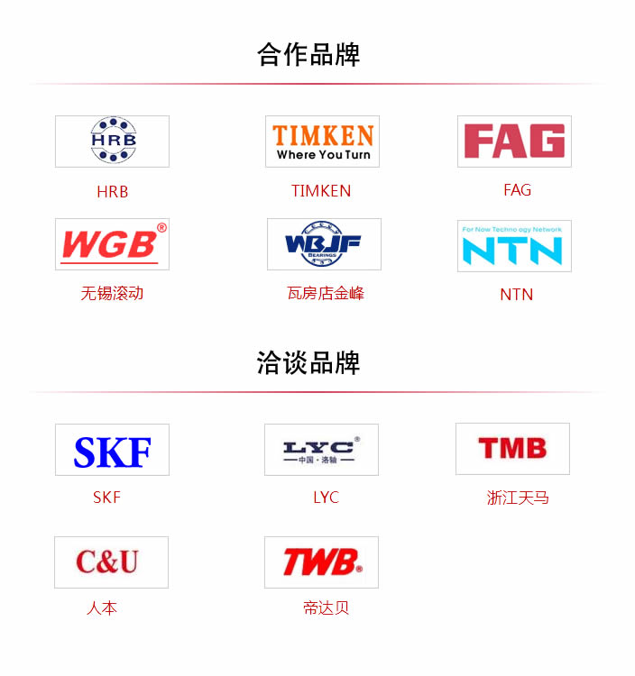 一線軸承品牌的大眾品牌、 升級品牌、高端品牌,輔以二線品牌以滿足市場的拾遺補缺。 電機、水泵、電工電氣、工具、皮帶傳動件等機電產品。