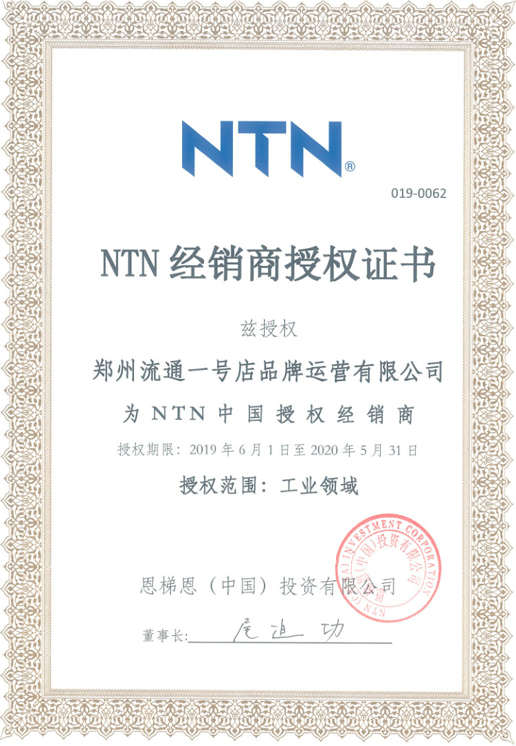 熱烈祝賀鄭州流通一號店品牌運營有限公司榮膺NTN中國授權經銷商。
